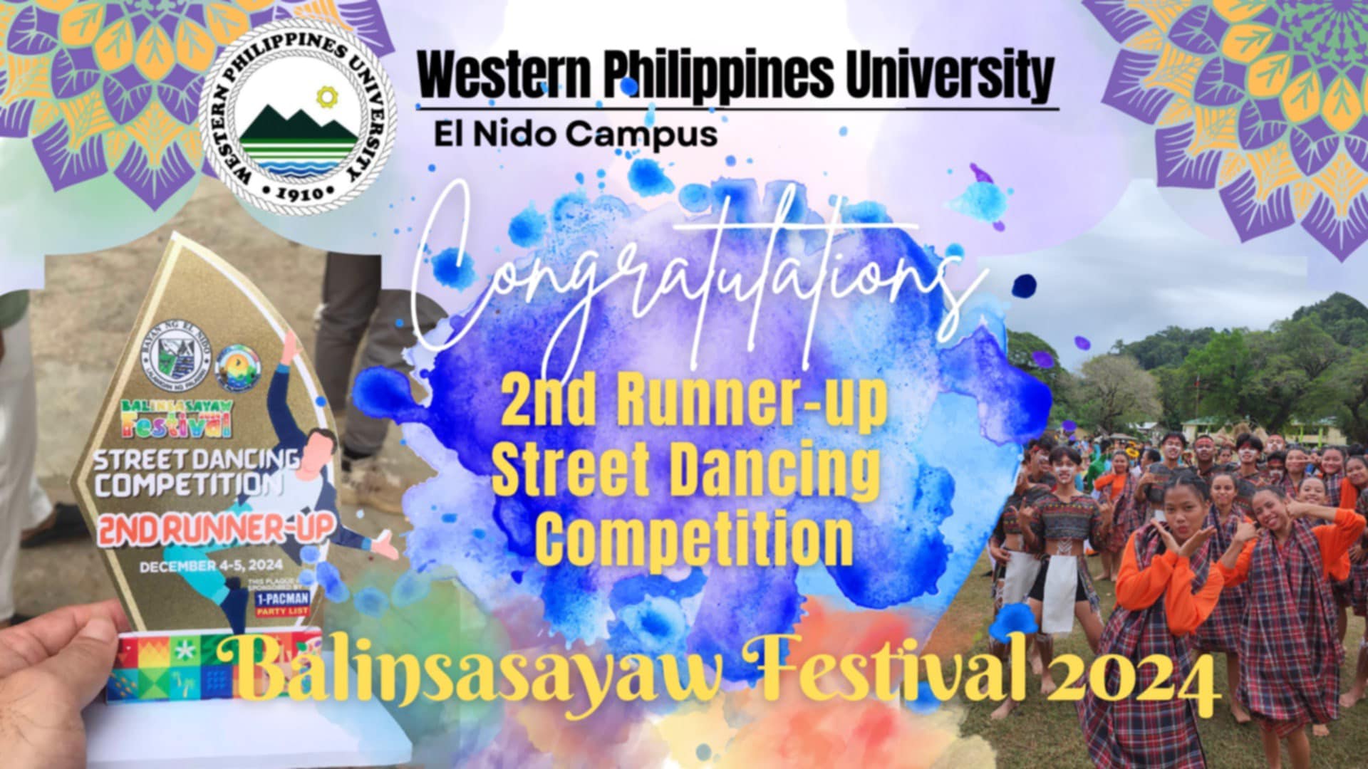 Congratulations to WPU El Nido Campus for clinching 2nd Runner-Up at the 2024 Balinsasayaw Festival in El Nido, Palawan!